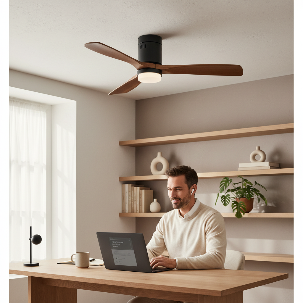 Ventilateur de plafond silencieux en bois clair avec télécommande – 132 cm - Ventileo Design